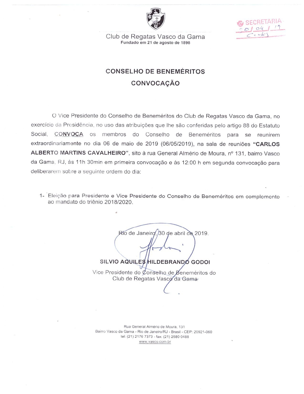 28/03/19 - Sempre Vasco divulga nota sobre resultado de julgamento que manteve resultado das eleições do Vasco