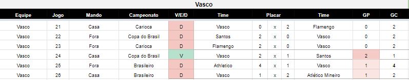 Vasco perdeu 5 dos seus últimos 6 jogos e sofreu 13 gols