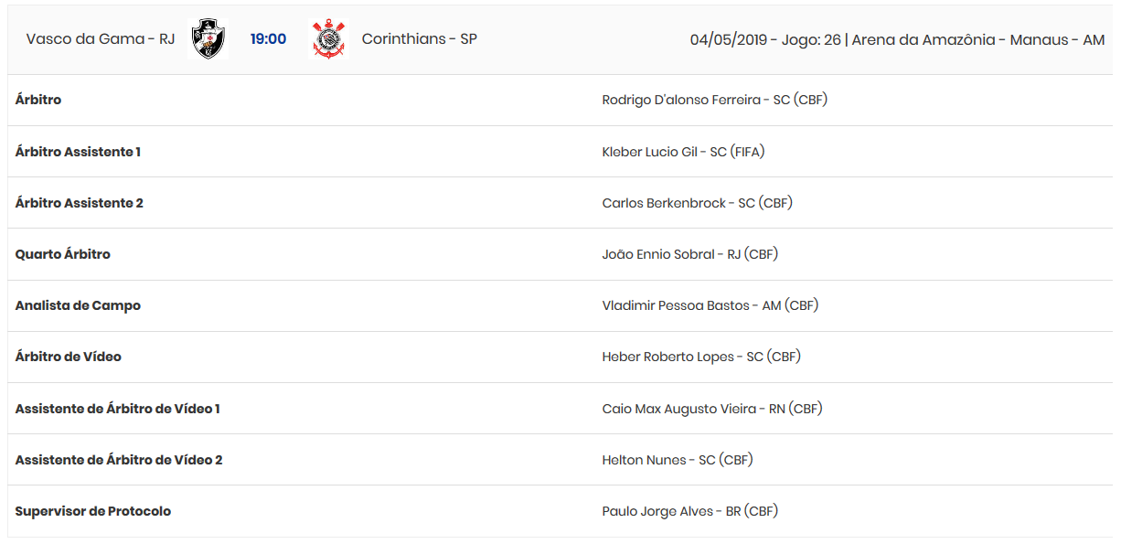 Rodrigo D'Alonso Ferreira, de SC, apitará Vasco x Corinthians