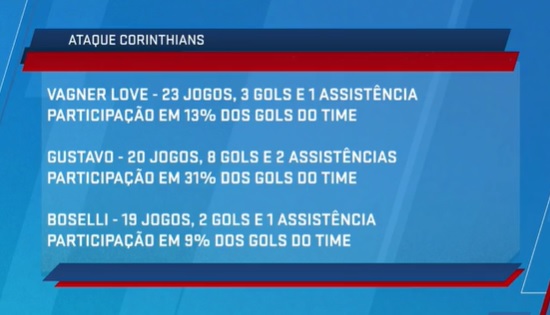 Espião Estatístico mostra os números de ataque do Corinthians e do Vasco