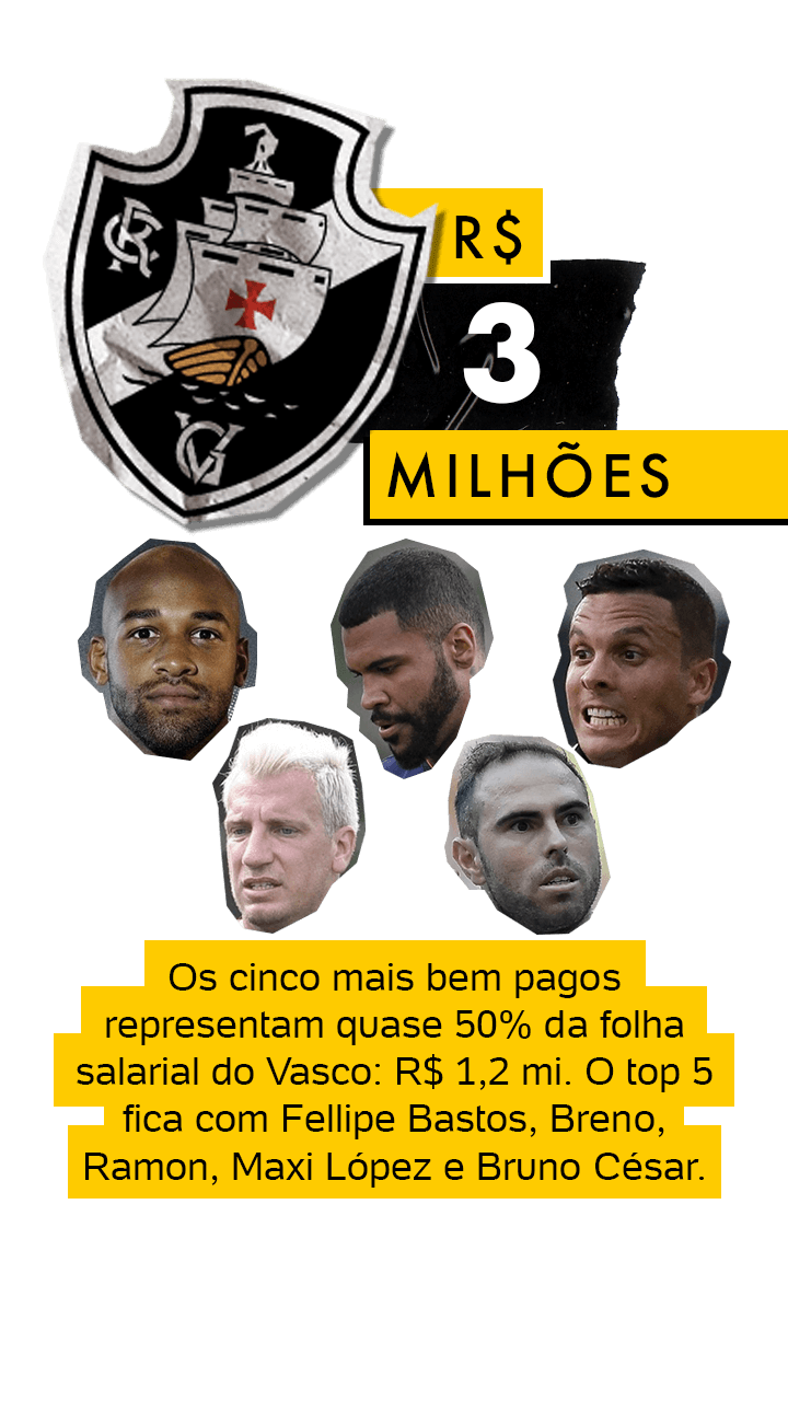 Folha salarial do elenco do Vasco é de R$ 3 milhões; veja quem ganha mais