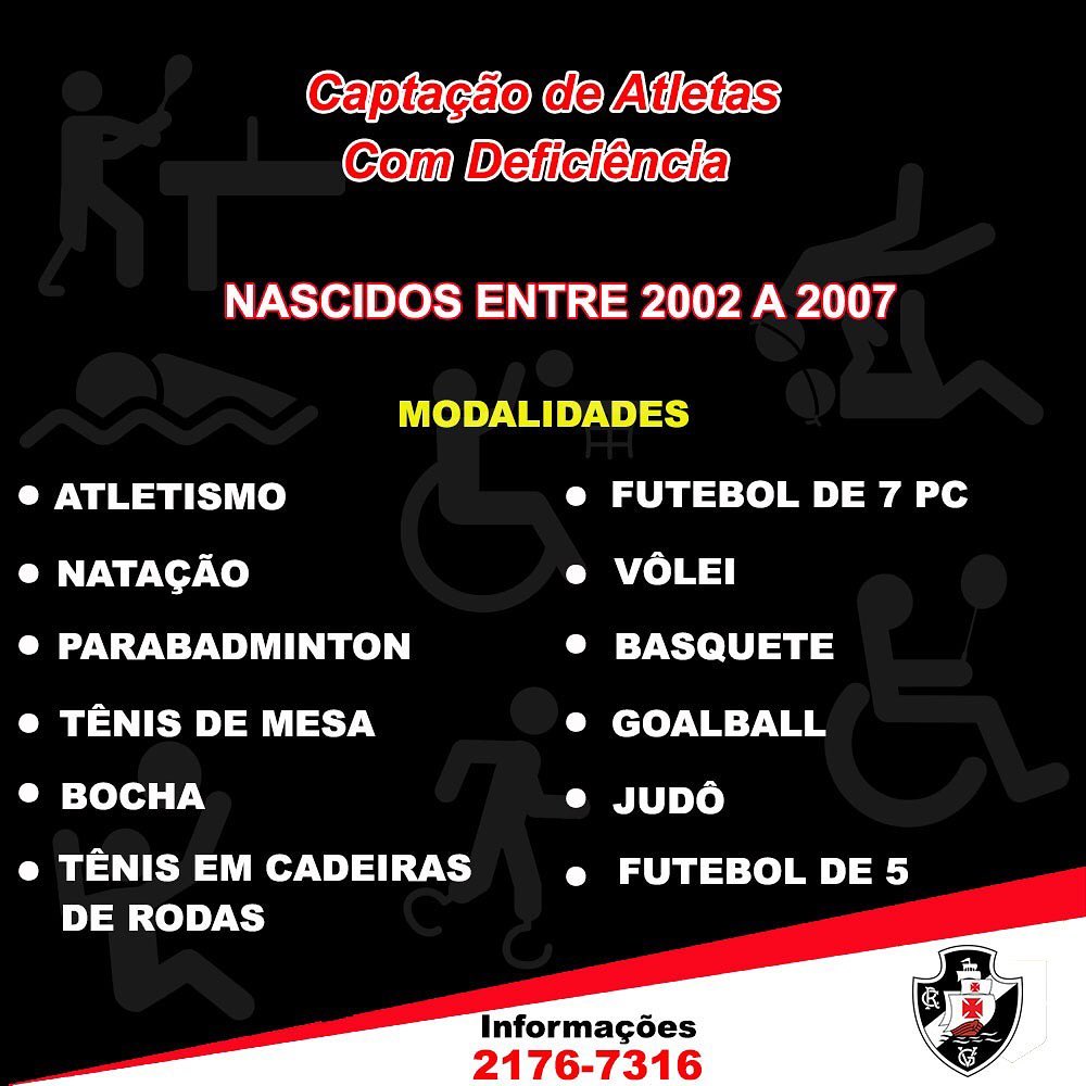 Vasco promove captação de atletas com deficiência para 12 modalidades paralímpicas