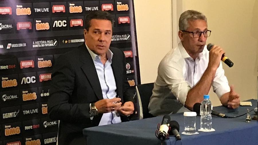 Com quase duas horas de atraso, Vanderlei Luxemburgo se apresentou em entrevista coletiva como novo treinador do Vasco. Ao lado do presidente do clube, Alexandre Campello, e de seu auxiliar, Mauricio Copertino, ele falou do prazer em retornar ao futebol, algo que não acontecia desde 2017, quando trabalhou no Sport.