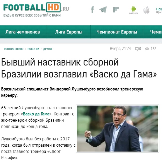 A contratação de Vanderlei Luxemburgo, ex-Seleção Brasileira e ex-Real Madrid, pelo Vasco teve repercussão na imprensa internacional. Veja abaixo.