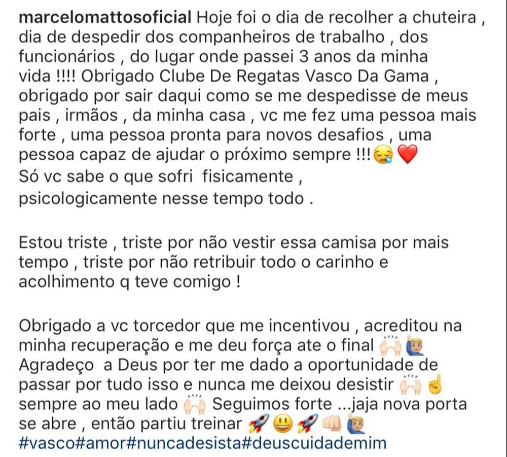 Livre no mercado, Marcelo Mattos fala sobre lesão, volta aos gramados e saída do Vasco