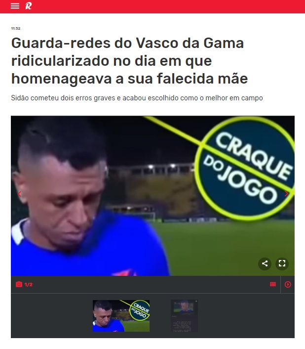 12/05/19 - Vasco publica nota de repúdio à 'exposição equivocada, constrangedora e desnecessária do atleta Sidão em rede nacional'