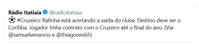Rafinha, pretendido do Vasco nas férias, está acertando com o Coritiba. Vai rescindir com o Cruzeiro. Ainda tem vaga? 👇🏽