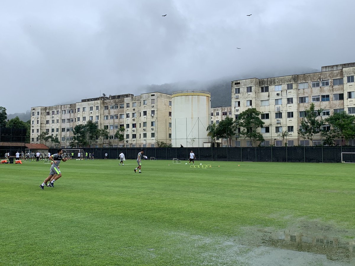 Henriquez e Vinicius Araujo correm em volta do gramado. Werley faz um trabalho separado do restante dos jogadores #gevas