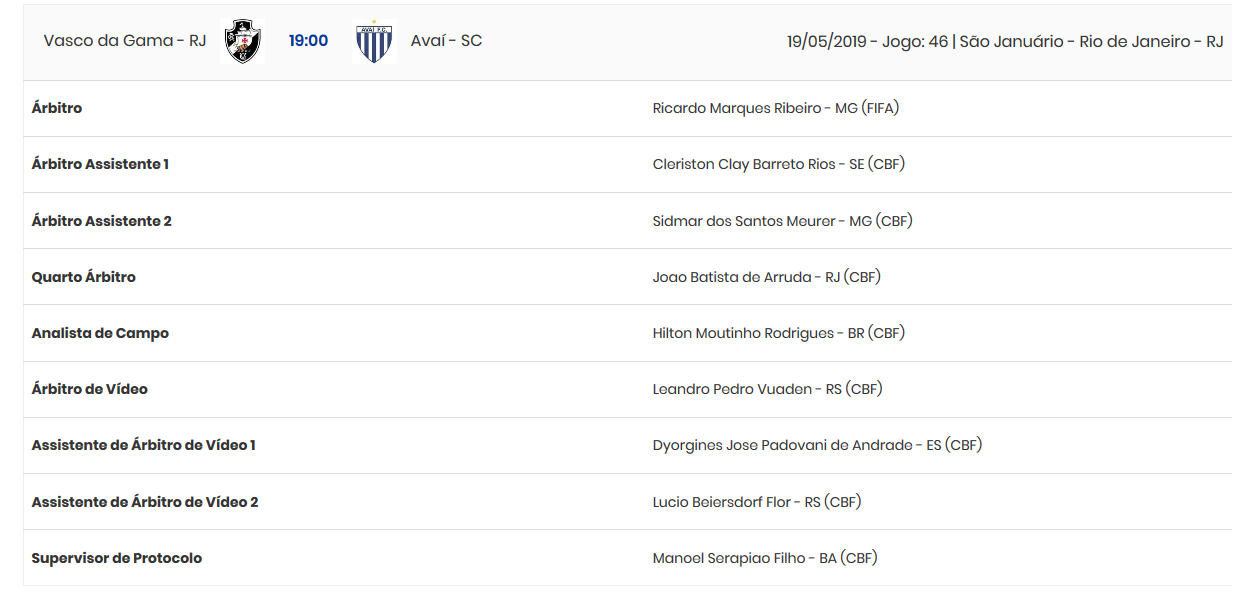 Ricardo Marques Ribeiro, de MG, apitará Vasco x Avaí; Leandro Vuaden, do RS, será o VAR