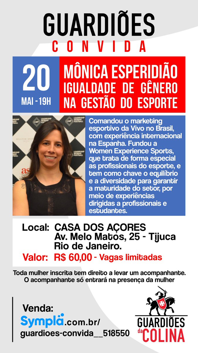 Grupo Guardiões da Colina promove palestra 'Igualdade de Gênero na Gestão do Esporte' nesta 2ª-feira