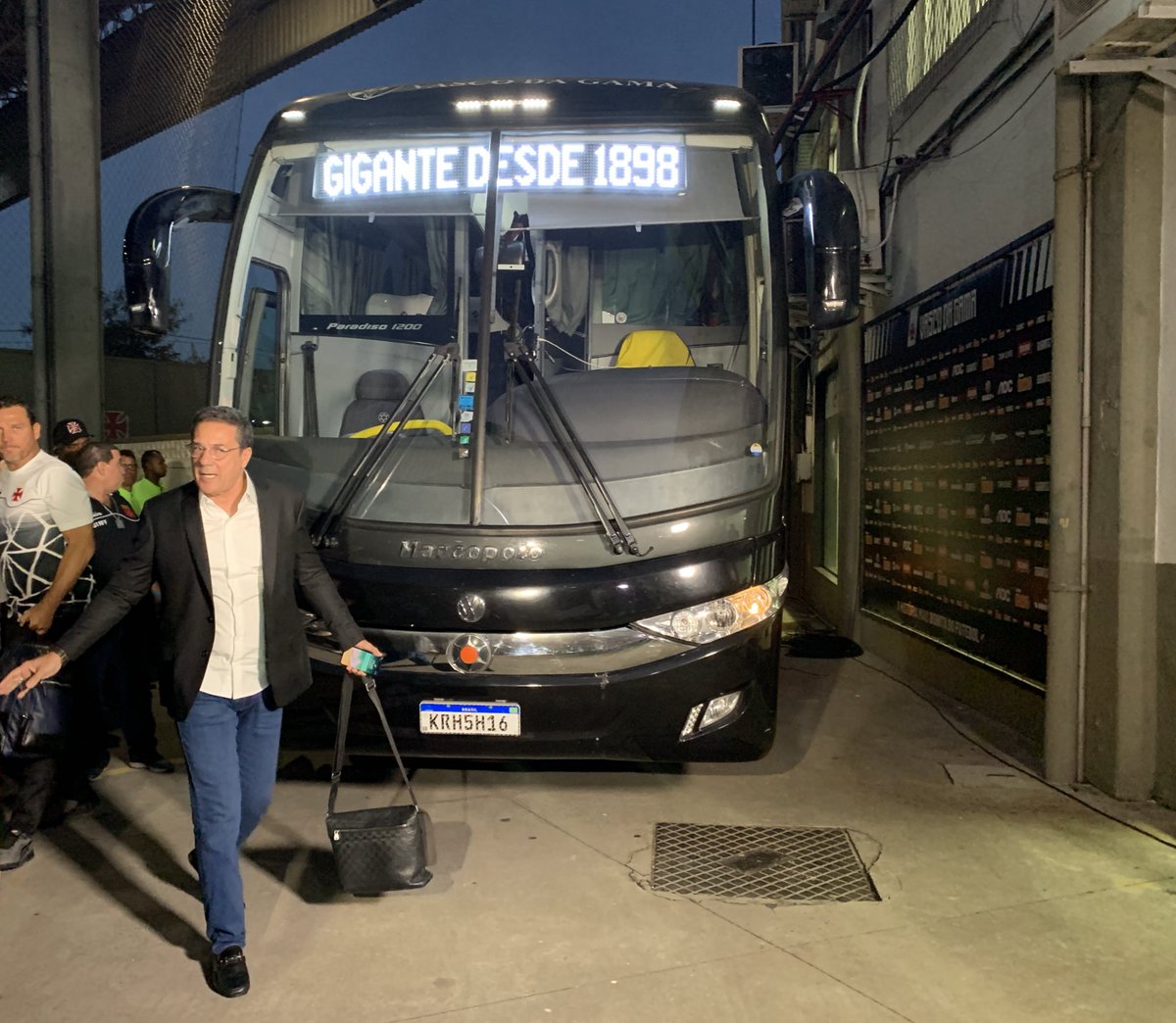 Luxemburgo foi o primeiro a descer do ônibus do Vasco. Cheio de estilo, o técnico estreia hoje no comando da equipe em São Januário #trcolina