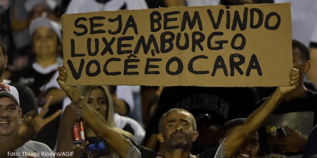 Torcedor-símbolo Caíque deu boas-vindas a Luxemburgo em cartaz; veja