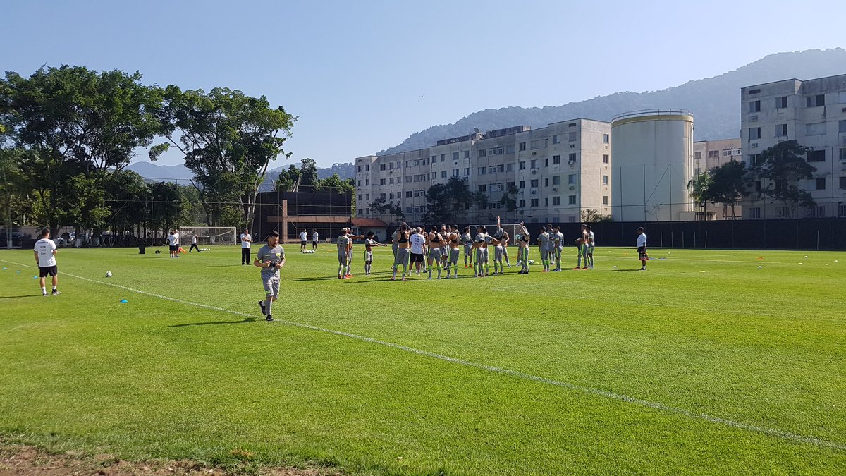 Rossi corre ao redor do gramado separado do grupo durante a recepção ao Vinicius. Lá atrás, o Luxa de olho. #gevas