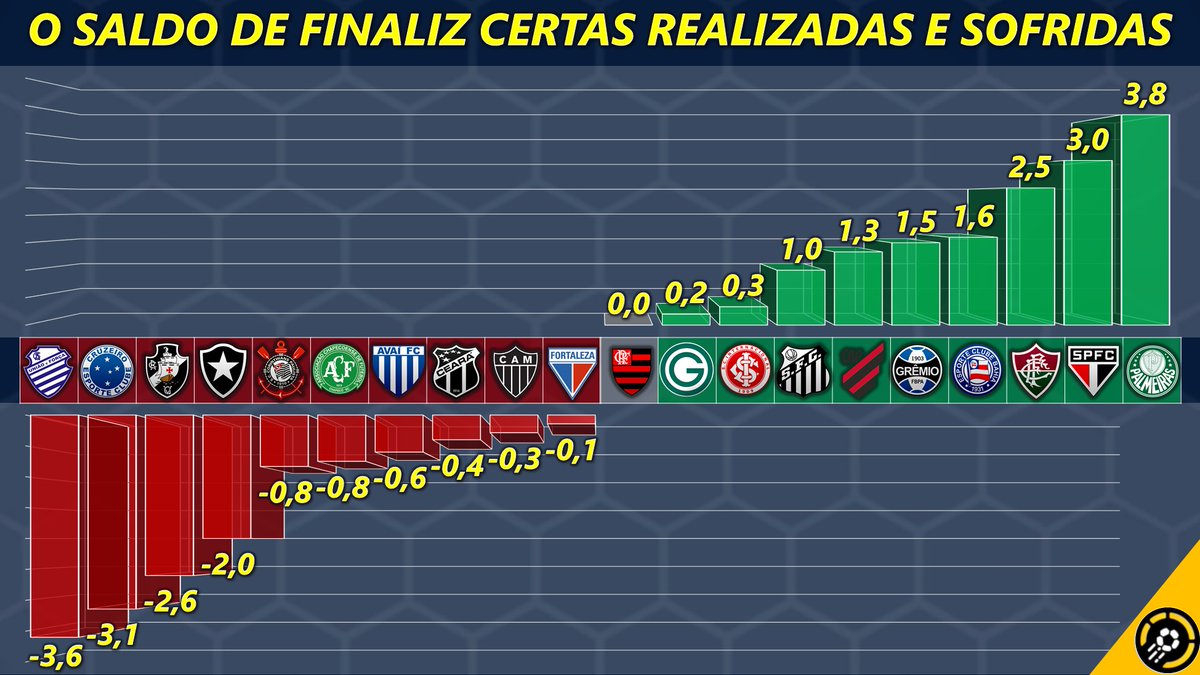 O saldo de finalizações certas feitas e sofridas desde que começou o BR19 (englobando outros campeonatos)