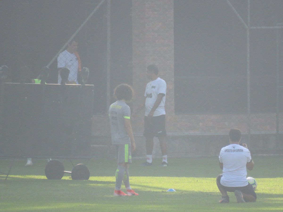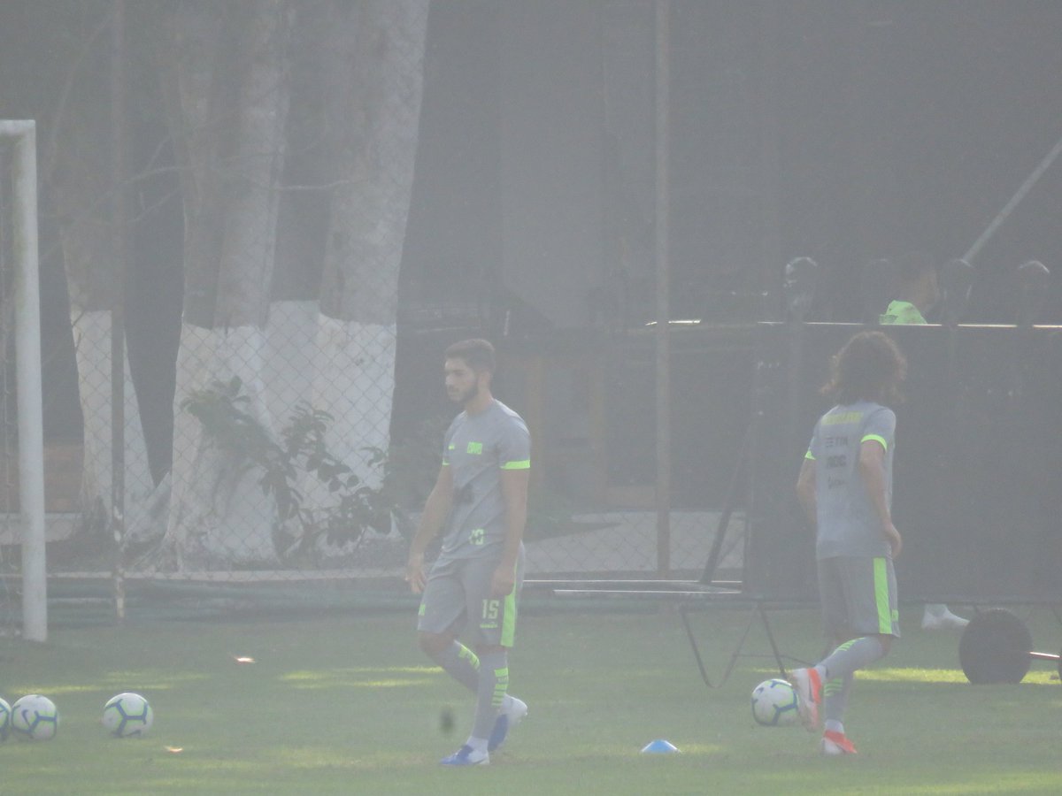 Por enquanto, alguns jogadores treinam cobranças de falta. Valdivia acabou de acertar uma no ângulo. #gevas
