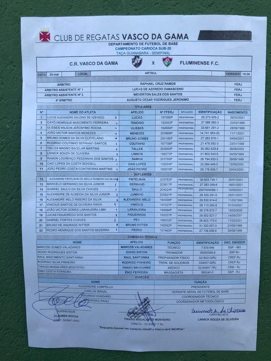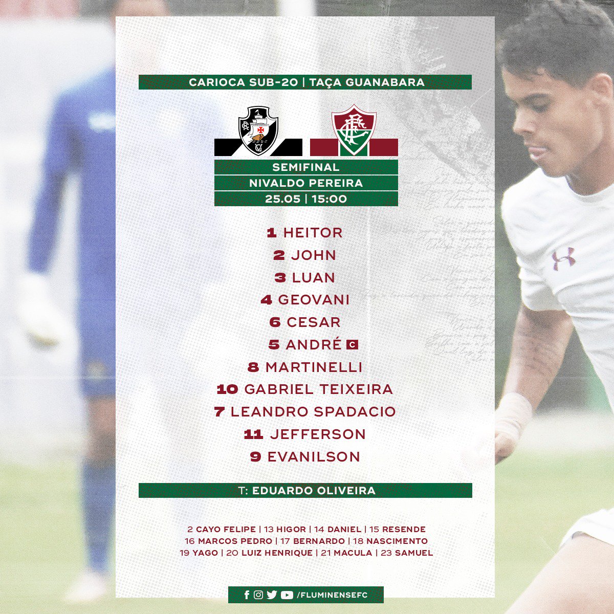 Vasco escalado para enfrentar o Fluminense, pela semifinal da Taça Guanabara Sub-20, no CT do Artsul: Lucão; Cayo Tenório, Ulisses, Menezes e Coutinho; Bruno Gomes, Caio Lopes e Linnick(C); João Pedro, Talles e Ramon. Técnico: Marcos Valadares #TGSub20 #VASxFLU