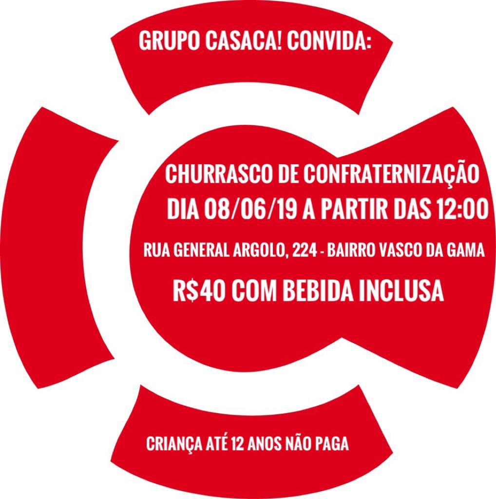 Grupo Casaca convida para confratenização no dia 08/06 às 12h no Bairro Vasco da Gama