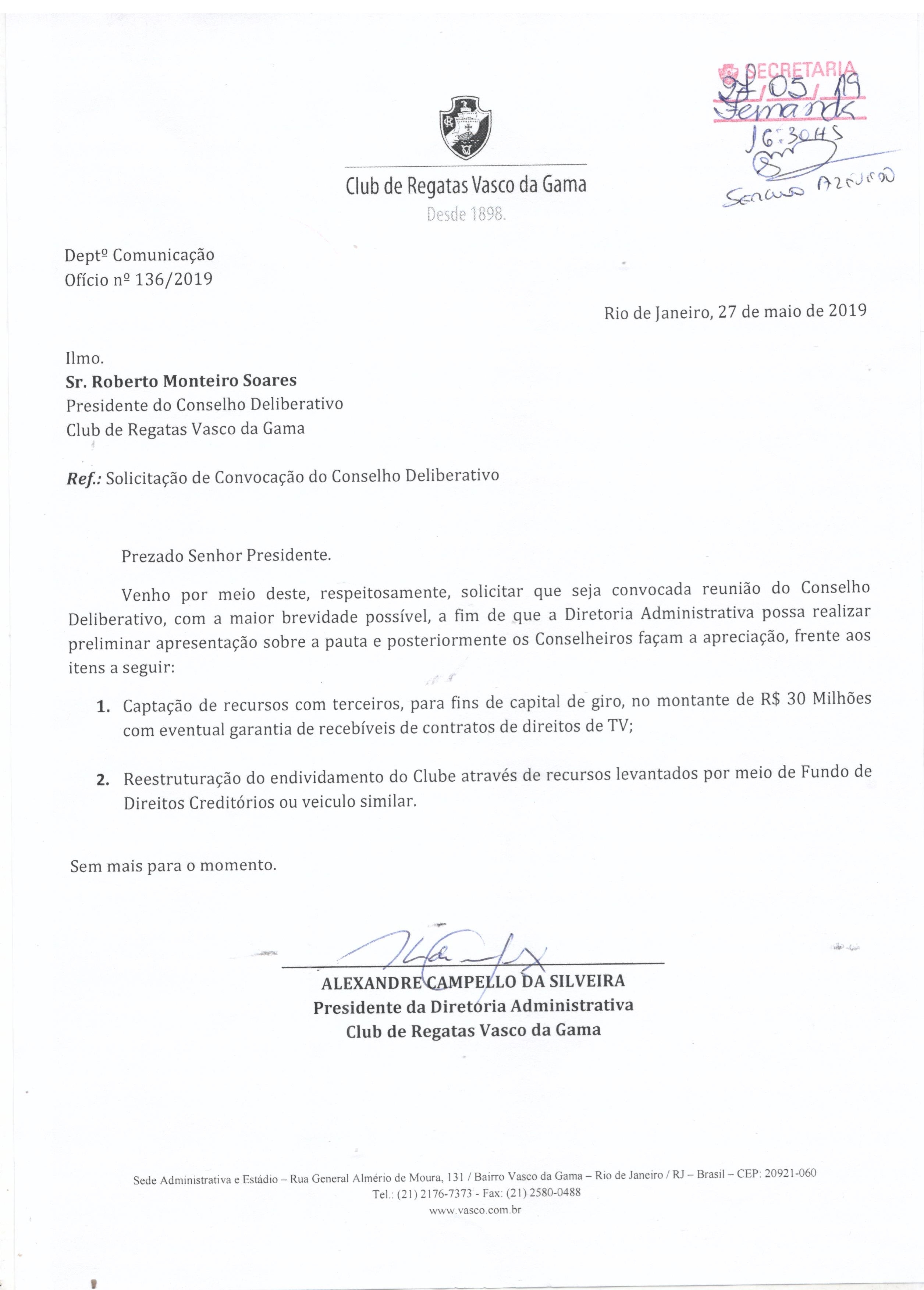 Presidente Alexandre Campello solicita convocação do Conselho Deliberativo