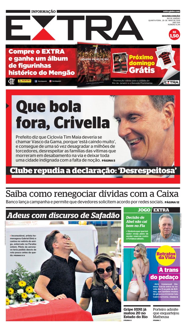 Veja como a imprensa destacou a declaração do prefeito Marcelo Crivella sobre o Vasco