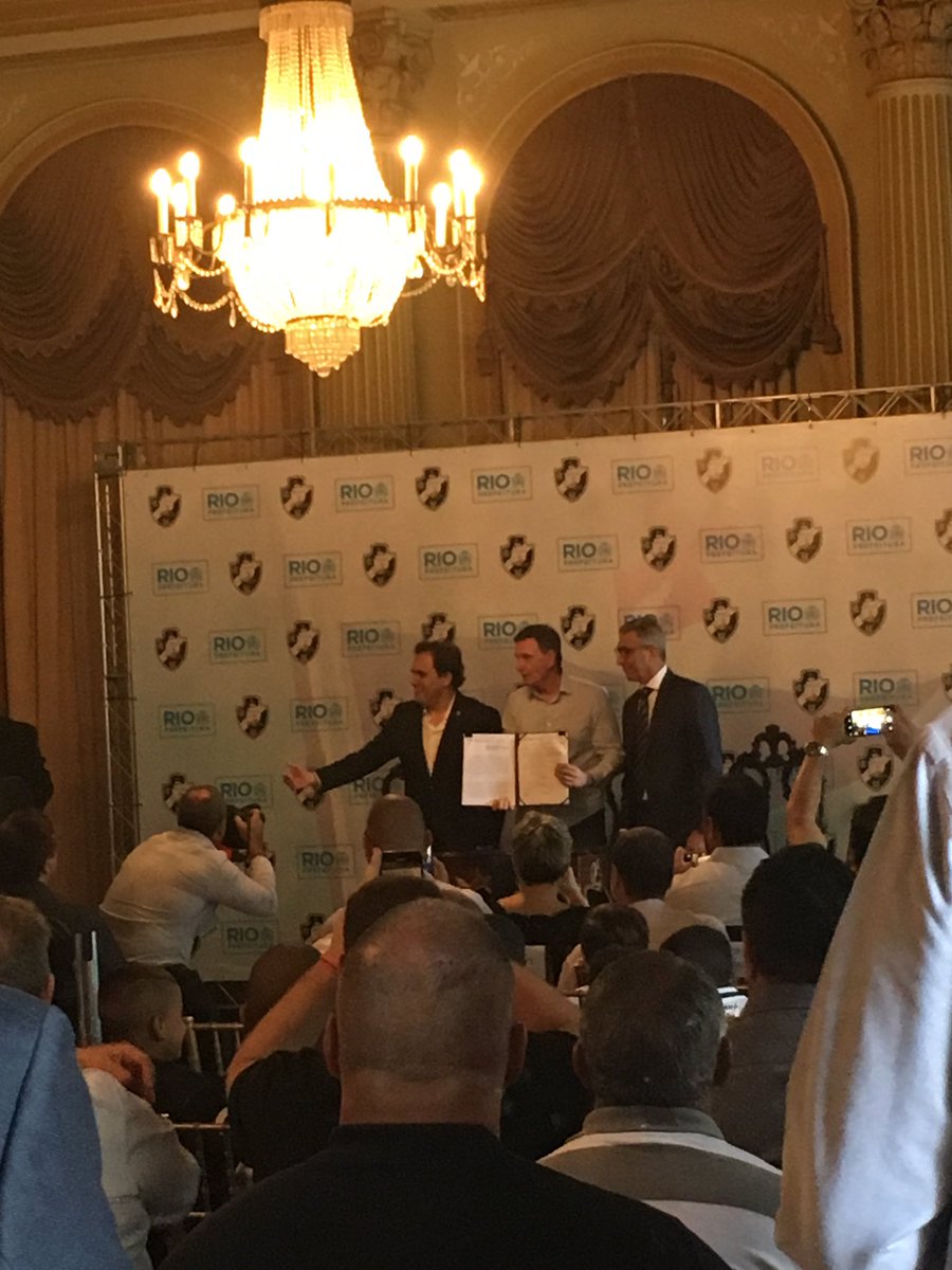 O prefeito Crivella ainda "brincou" em uma parte da cerimônia dizendo que se ele tinha algum pecado com o Vasco, esse pecado caiu por terra porque ele serviu bolinho de bacalhau na cerimônia. #OsDonosDaBolaRio @EdilsonNaRede