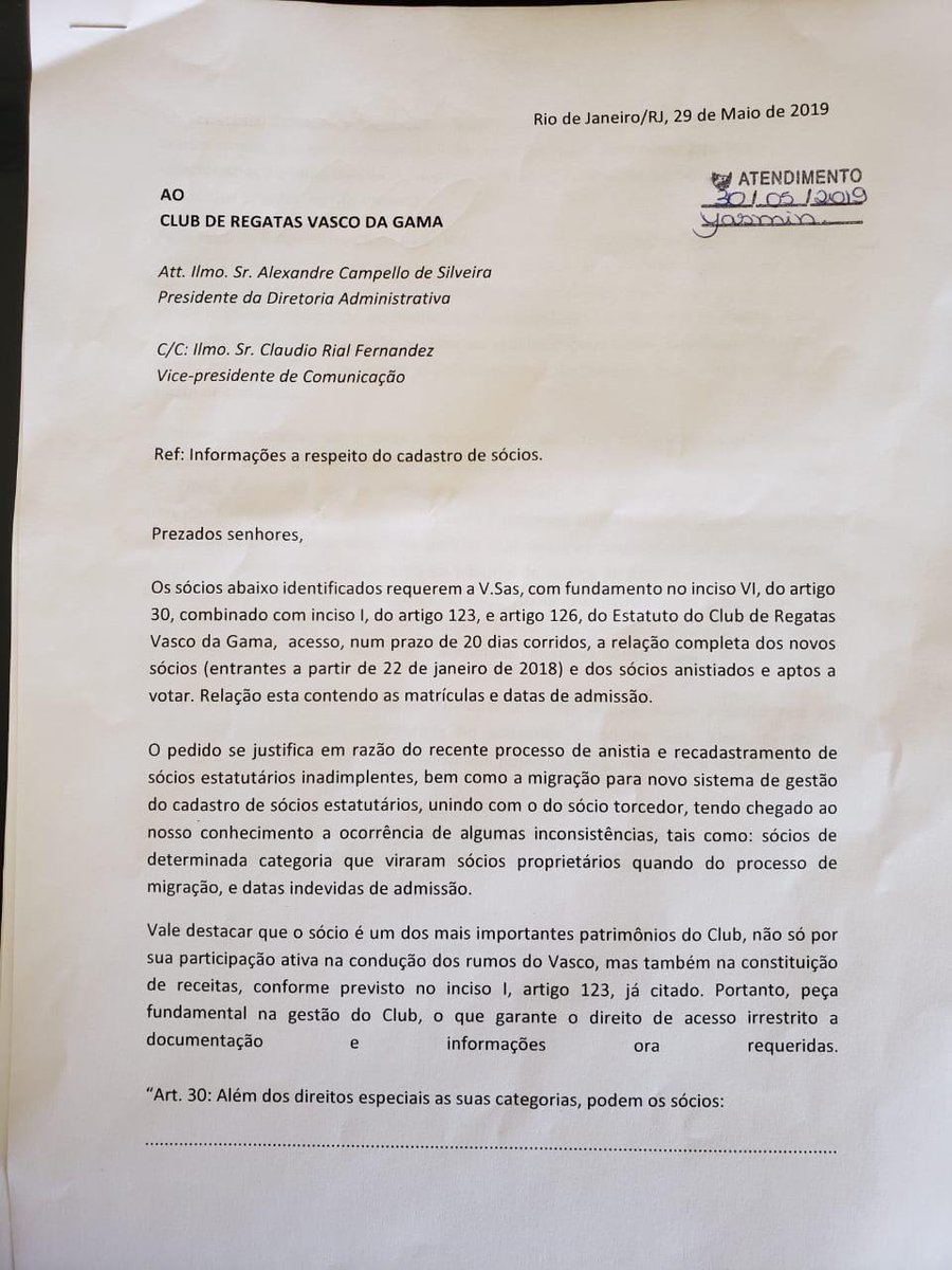 RAPIDINHA: Sócios do Vasco protocolaram pedido para a diretoria disponibilizar a lista de votantes, dos anistiados e quem está apto a votar no próximo pleito. A solicitação visa apresentar transparência quanto a algumas 'inconsistências'. Leia! #FutGloboRadio