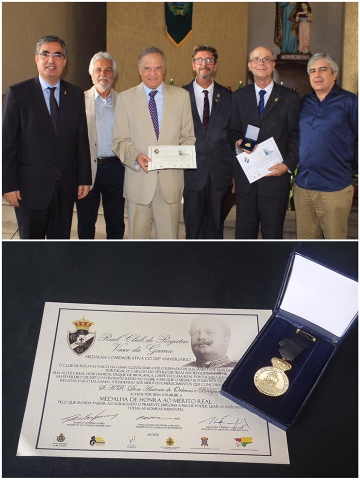 Medalha de Honra do Mérito Real, comemorativa do 120º aniversário do Club de Regatas Vasco da Gama, do Rio de Janeiro, elevado, no ano passado, à condição de Real Club, por mercê do Príncipe Dom Duarte, Duque de Bragança e Chefe da Casa Real de Portugal, primo-segundo do Príncipe Dom Luiz de Orleans e Bragança Chefe da Casa Imperial do Brasil, com a qual Sua Alteza Real Dom Antônio de Orleans e Bragança, terceiro na linha de sucessão ao Trono Imperial, e o Doutor Bruno Hellmuth, Chanceler do Círculo Monárquico Dom Luiz de Orleans e Bragança, o Príncipe Perfeito, do Rio de Janeiro, foram agraciados pelo Engenheiro Manuel Beninger, Presidente da Associação dos Autarcas Monárquicos de Portugal, durante o III Encontro Monárquico Fluminense, realizado por iniciativa do Círculo Monárquico do Rio de Janeiro, reunindo cerca de duzentos veteranos e jovens monarquistas no auditório da Igreja de Sant'Anna, no Rio de Janeiro, no último dia 11.
