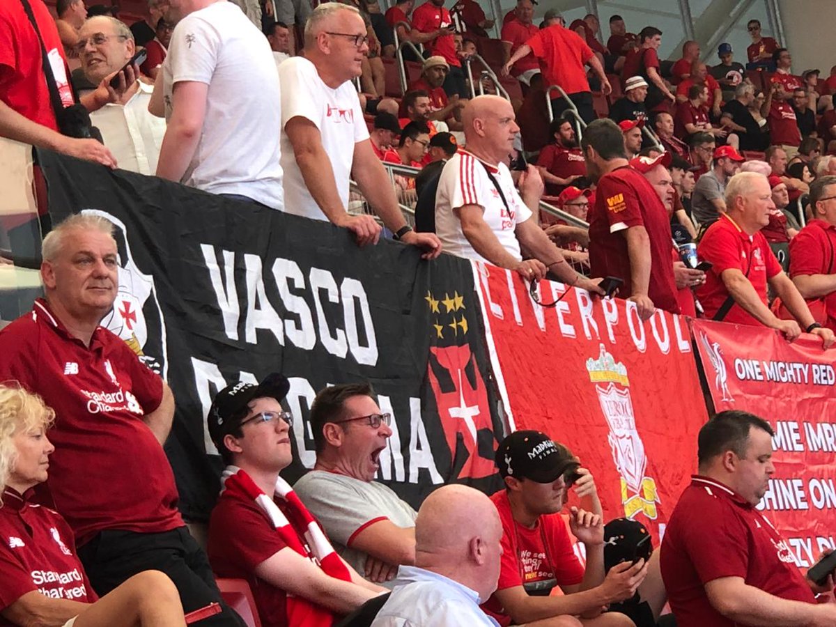 Bandeira do Vasco é vista no estádio na final da Liga dos Campeões entre Tottenham e Liverpool