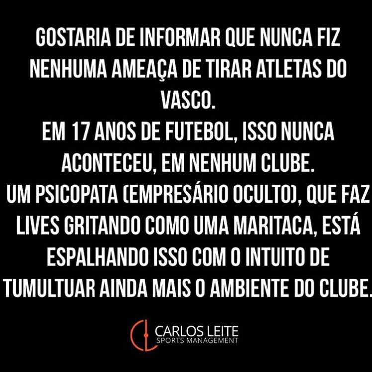 02/06/19 - Carlos Leite ameaça retirar todos os seus jogadores do Vasco caso Campello seja afastado