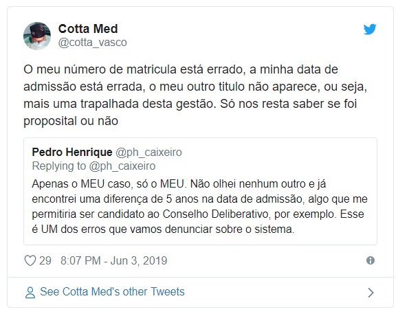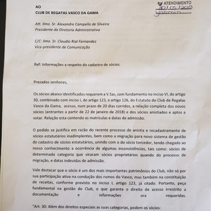 No dia 30 de maio de 2019, o grupo político "Guardiões da Colina" protocolou um pedido de relação completa dos novos sócios (entrantes a partir de 22 de janeiro de 2018) e dos sócios anistiados e aptos a votar. No documento, constava já um alerta sobre algumas inconsistências, tais como as de possíveis associados de determinadas categorias que se tornaram proprietários (com direito a voto) após recadastramento e processo migratório para o novo sistema de gestão de cadastro mesmo sem terem pago a obrigatória joia de adesão.