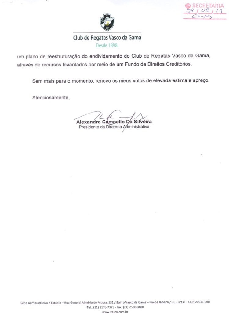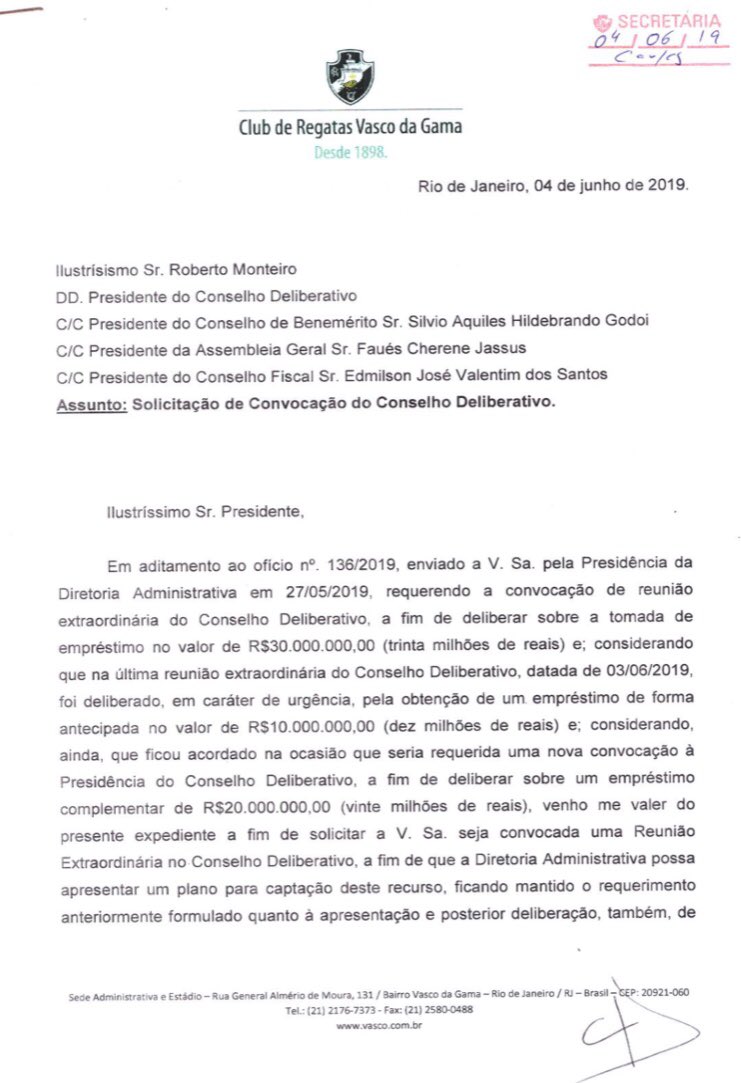 Alexandre Campello fez a solicitação para Roberto Monteiro, presidente do Conselho Deliberativo, para que a reunião sobre a aprovação dos 20 milhões aconteça. A marcação deve ser para a próxima segunda-feira. Mas ainda não está confirmada. Segue a íntegra do pedido: