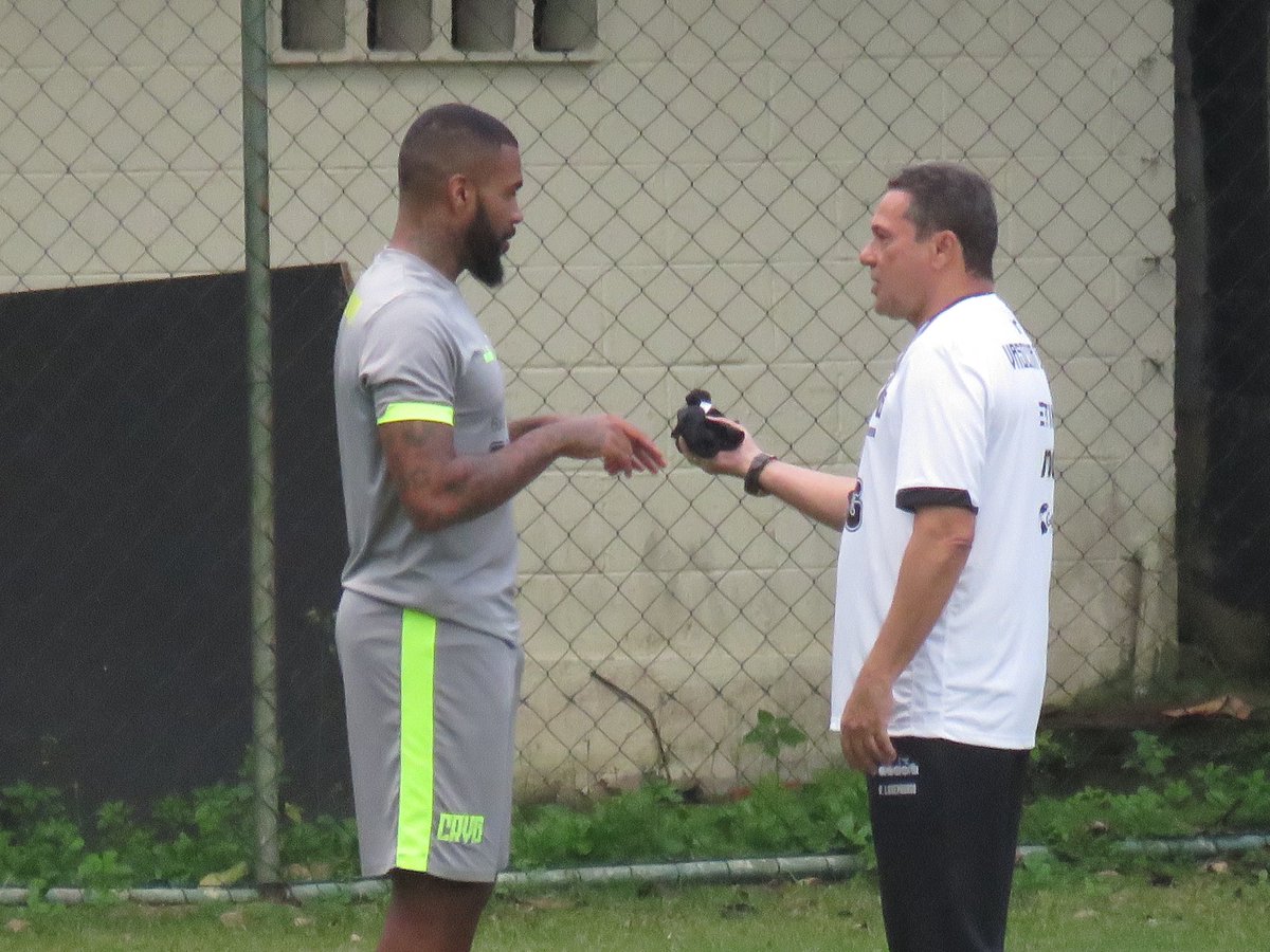 Luxemburgo também conversou separado com Breno. Zagueiro corre ao redor do gramado. #gevas