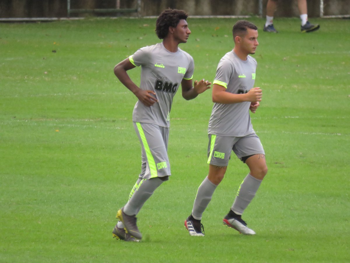 Elenco corre no gramado para aquecer. Talles e Bruno Gomes seguem com o grupo. #gevas