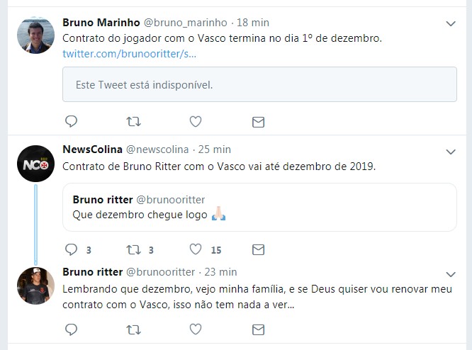 Fonte: Twitter do jornalista Bruno Marinho/O Globo, Twitter NewsColina, Twitter do jogador Bruno Ritter