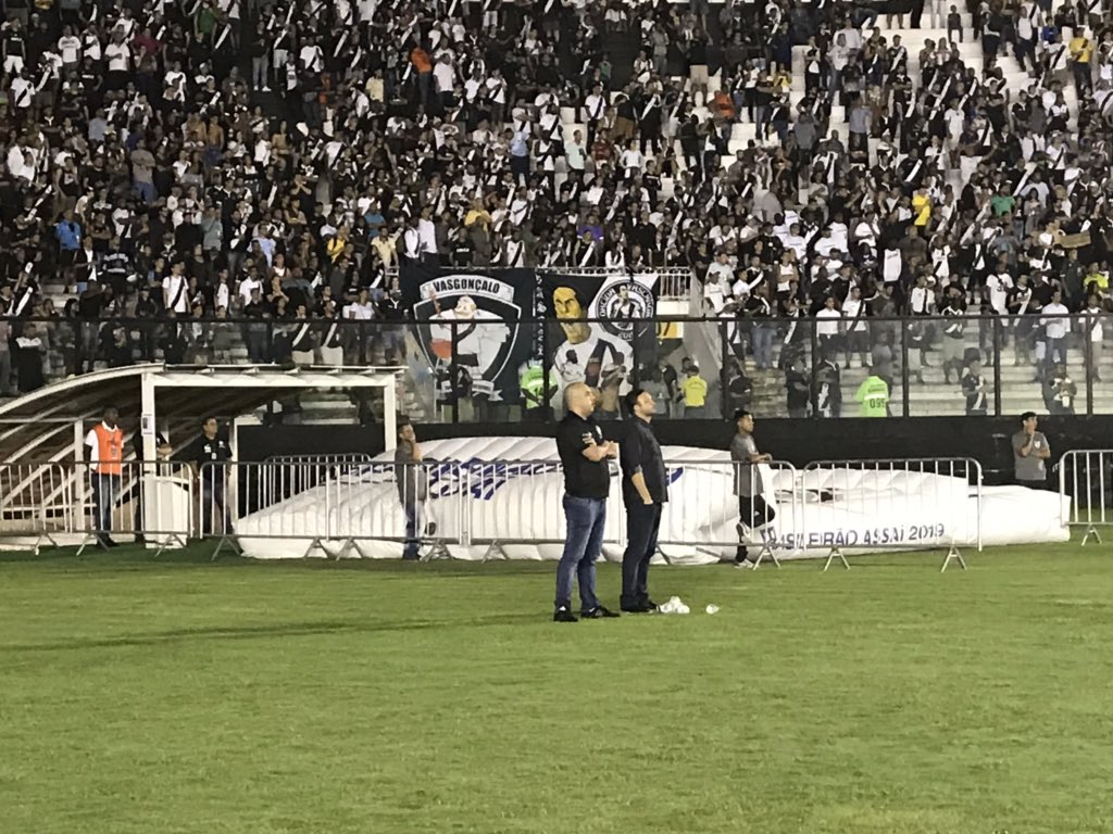 O novo diretor-executivo do Vasco, André Mazzuco acompanha o jogo próximo à entrada do vestiário ao lado do supervisor Fabiano Lunz #FutGloboRadio