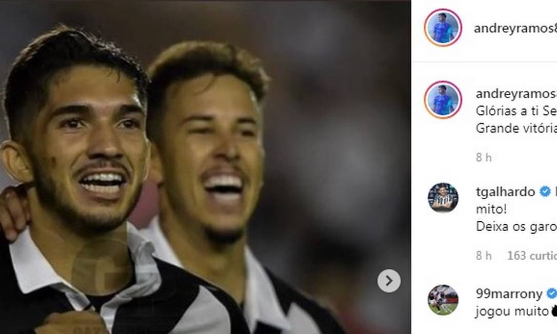 Em seguida, recebeu diversas mensagens, como do companheiro de equipe Marrony, que escreveu: 'Parabéns, irmão, jogou muito'. E, também, de Thiago Galhardo, que rescindiu contrato com o Vasco e atualmente está no Ceará: