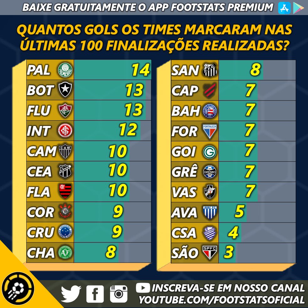Palmeiras lidera com 14 gols nas últimas 100 finaliz; 1 gol a cada 7,1