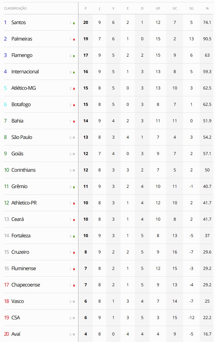 - Fica em 19º se o Avaí vencer o Palmeiras