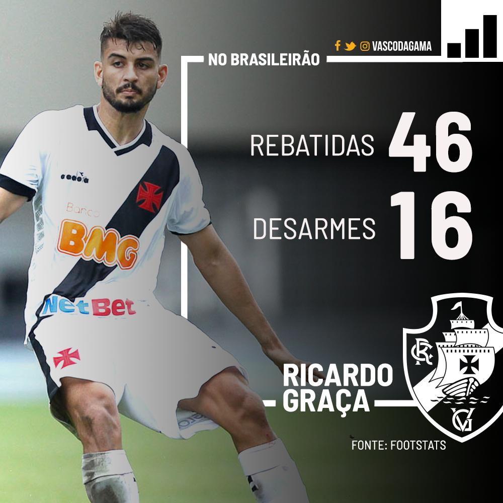 Com 46 rebatidas e 16 desarmes, Ricardo Graça é o grande destaque defensivo do Vasco no Brasileirão 2019.