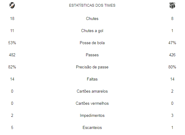 Foram nove finalizações do Vasco e nenhuma do Ceará durante o primeiro tempo em São Januário. Retrato de uma equipe que tenta se reinventar para sair da zona de rebaixamento do torneio, mas que ainda tem dificuldades. Tanto que não conseguiu marcar.