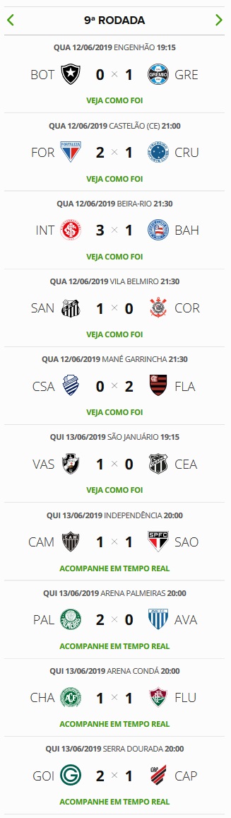 Terminada a 9ª rodada do Campeonato Brasileiro, o Vasco, que derrotou o Ceará por 1 a 0, subiu da 18ª para a 15ª colocação e passará todo o período de paralisação para a Copa América (aproximadamente 1 mês) fora da zona do rebaixamento, o Z4.