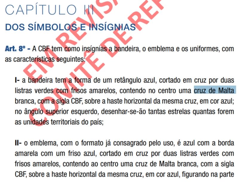 Estatuto da CBF prevê Cruz de Malta no escudo e na bandeira da entidade