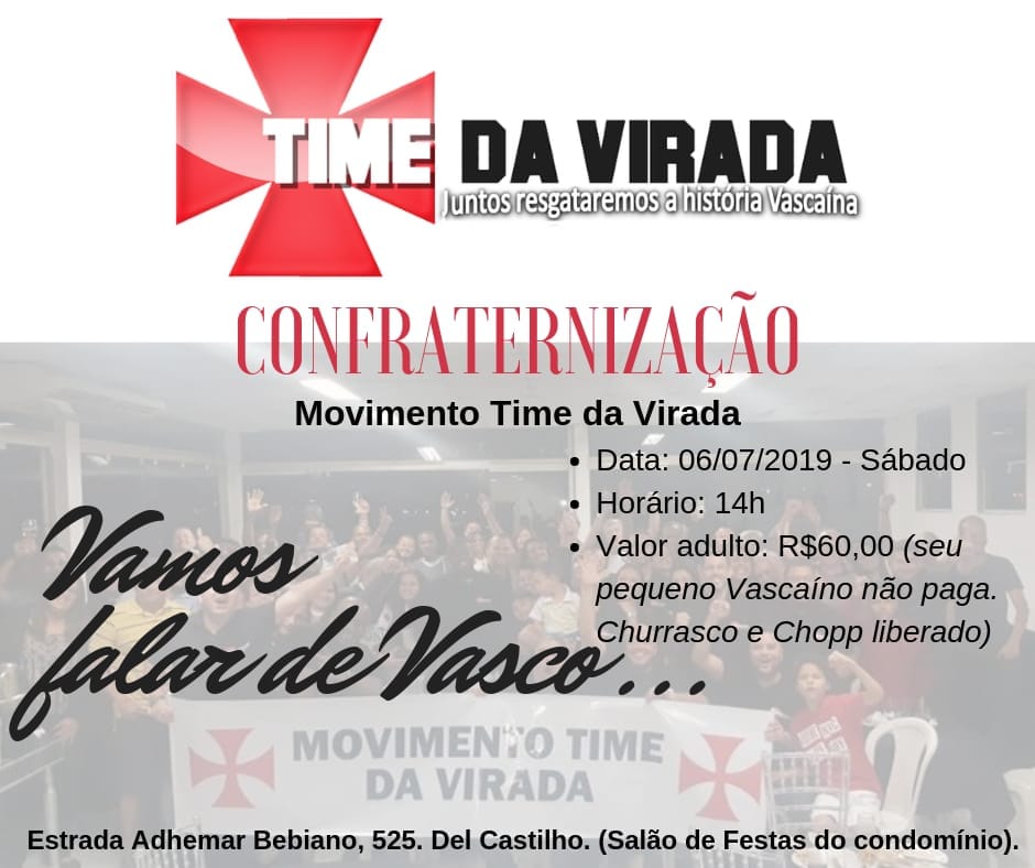 Movimento Time da Virada realizará confraternização no dia 06/07 em Del Castilho