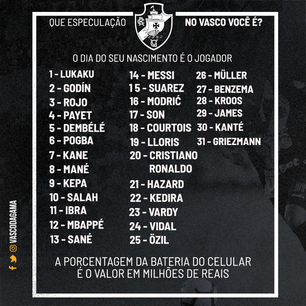 Vasco faz brincadeira em rede social com especulações e dia do aniversário dos torcedores; confira