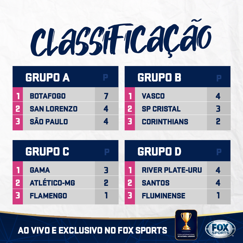 Três jogos abriram a terceira rodada da Copa Internacional de Futebol Legends. No estádio Bezerrão, em Brasília, o Corinthians empatou com o San Lorenzo por 1 a 1. Ambas as equipes ficaram de fora das semifinais. O classificado do Grupo A foi o Botafogo, que venceu por 3 a 0 o Sporting Cristal. No Grupo B, o Vasco perdeu por 2 a 0 para o São Paulo, mas ainda ficou com a vaga. Os duelos da próxima fase serão disputados no próximo sábado e serão definidos nesta quinta-feira (20 de junho).