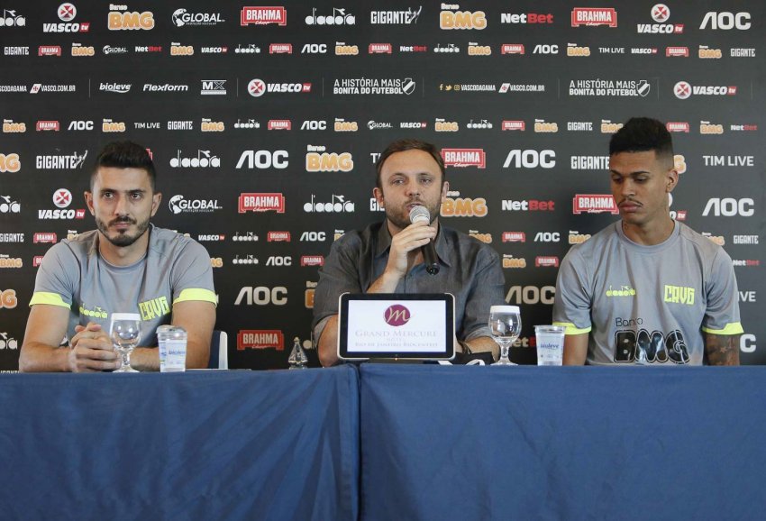 O Vasco apresentou dois reforços no início da tarde desta sexta-feira (21/6). O volante Richard e o meia Marquinho vestiram a camisa do Gigante da Colina pela primeira vez ao lado do Diretor Executivo de futebol, André Mazzuco, que fez uma breve apresentação dos jogador. Após as primeiras fotos vestindo o manto cruzmaltino, eles receberam as boas vindas do dirigente e atenderam aos jornalistas presentes.