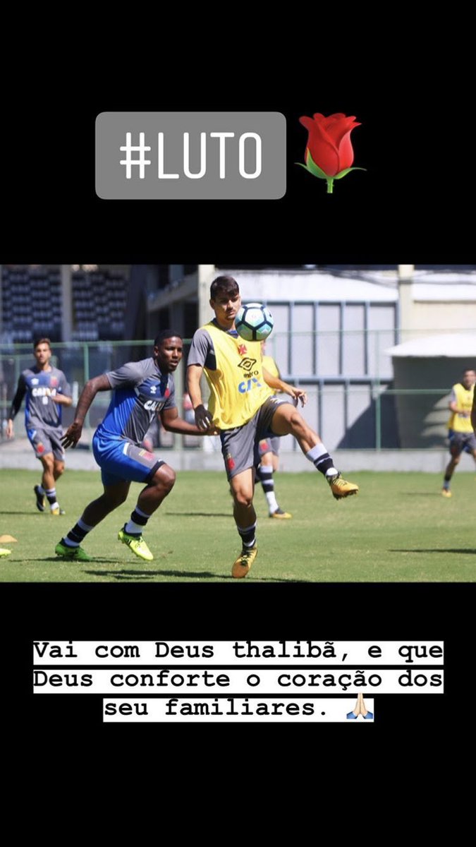 Algumas homenagens de jogadores do Vasco para Thalles através do Instagram. Ricardo, que fez a primeira postagem, jogou com ele, assim como Pikachu. #lanceVAS