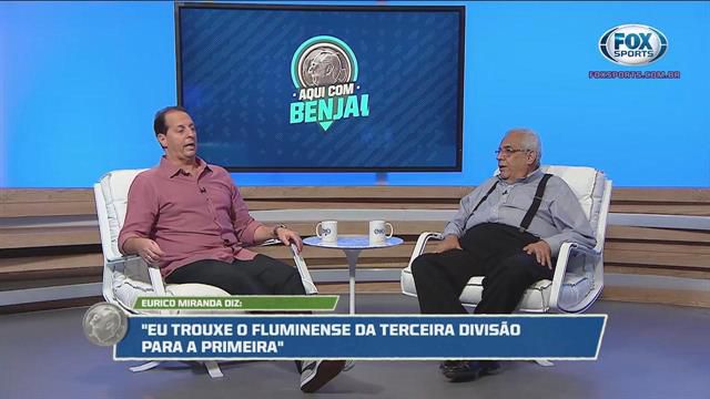 Benja hesitou ao ver o dirigente com fama de quem não gosta da imprensa, mas foi cumprimentá-lo mesmo assim. "Falei: 'Puta, e agora?'. Os caras falavam que o Eurico era grosso, que maltratava jornalista. O que eu faço? Tenho que passar por ele. Ele tá sentado, fumando charuto. Eu vou fazer a minha parte, falar e cumprimentar. Se ele me tratar mal, tratou. Tem que respeitar porque é uma pessoa mais velha. Passei: 'Eurico, boa noite. Prazer, eu sou o Benja. Tudo bem com o senhor?'. Cara, estou vendo a cena hoje. Ele tava com charuto, olhou assim (para cima): 'Porra, gosto de você pra caralho'. Falei: 'É mesmo?'. 'Gosto, porra. Tu fala de futebol de uma forma que eu gosto. Legal pra caralho'. Falou assim! Nisso, ficamos 30 minutos conversando. Não tinha ninguém. Uma hora, peguei e falei: 'Eurico, você falou que gosta de mim. Gosta mesmo?'. 'Gosto, porra'. 'Me dá uma entrevista?'. Ele falou: 'Dou, não tem problema nenhum'".
