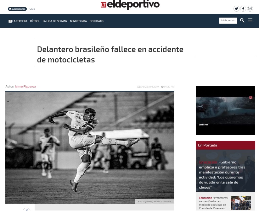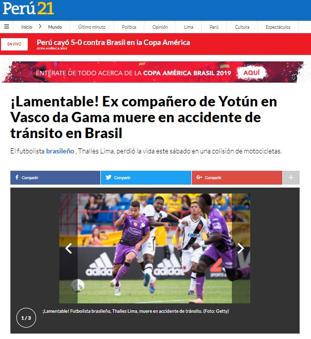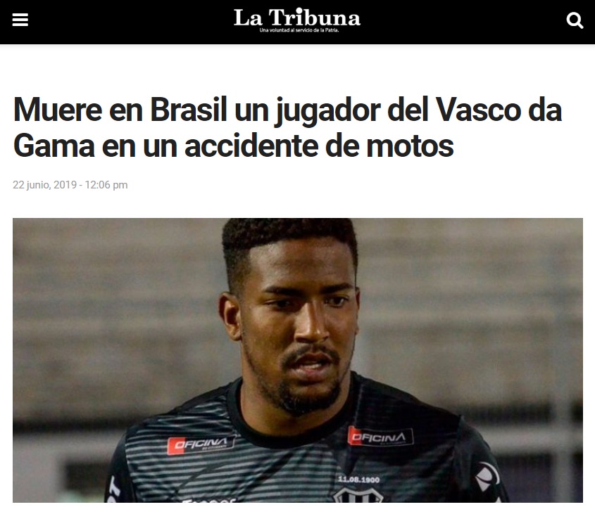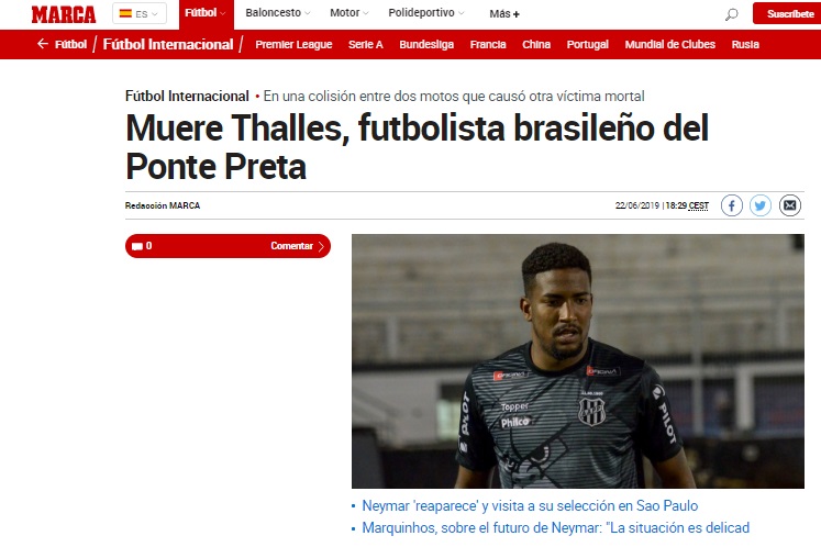 O atacante Thalles, do Vasco, porém emprestado à Ponte Preta, faleceu na manhã de sábado num acidente de moto em São Gonçalo. Veja a repercussão no exterior.