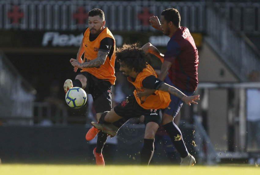 Aos cinco minutos, o Vasco já vencia por 2 a 0, com dois gols de Valdívia. O meia, escalado como centroavante por Luxemburgo, aproveitou duas bolas que partiram do lado direito para garantir a vantagem no placar ainda no início do jogo-treino. A mudança de posicionamento foi o principal teste do treinador.