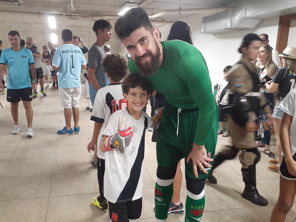 Pequeno torcedor recebeu luvas de Fernando Miguel de presente em Cariacica